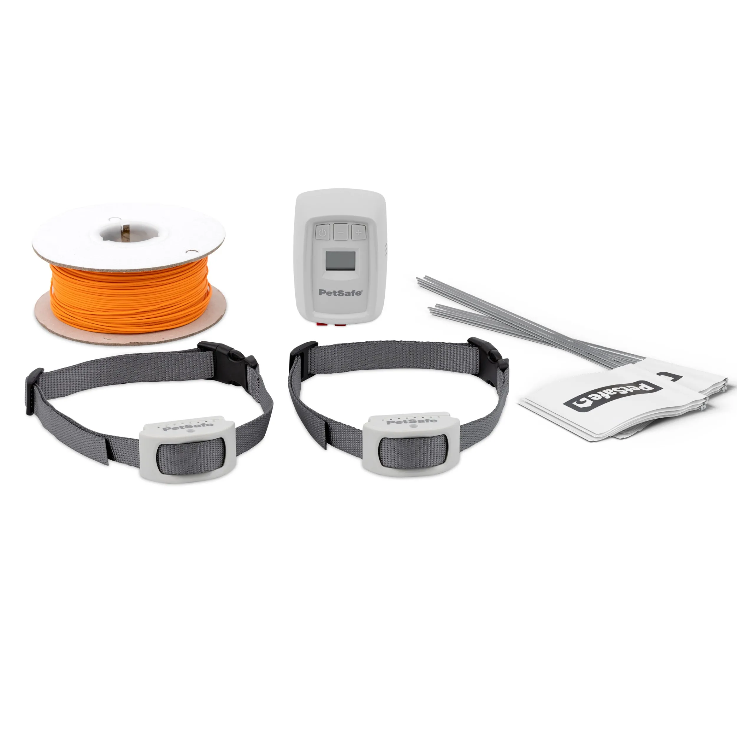 The Classic In-Ground Fence™ 2 Dog system will give you peace of mind knowing your dog is safe and secure inside his yard. This In-Ground Fence™ system comes with 2 collars so both dogs in your family can safely play outside together. If you have a rectangular or unique-shaped yard, an in-ground fence might be a great option. Setting up an in-ground fence is a DIY project, so we like to tell pet parents to plan to install your new fence over a weekend. The in-ground fence transmitter has an LCD screen that shows you what the boundary distance is set to and the wire break warning indicator. This kit comes with 500 feet of boundary wire which lets you secure a 1/3-acre yard. If your yard is larger, just purchase more boundary wire to fence in up to a 5-acre yard. The rechargeable receiver collars have 7 levels of adjustable static correction that you can set based on your dog’s temperament. The collars also have a tone and vibration level, which is great for when you’re training your dog. The receiver collars are also compatible with all PetSafe® Pawz Away Pet Barriers (sold separately), so you can keep your dog safe outside and away from off-limit areas inside your home with the same collar. You can add as many pets to this in-ground fence system as you need. Just purchase additional compatible collars for every pet in your family. Your pet deserves the best. Trust PetSafe® to keep your pet healthy, safe and happy.