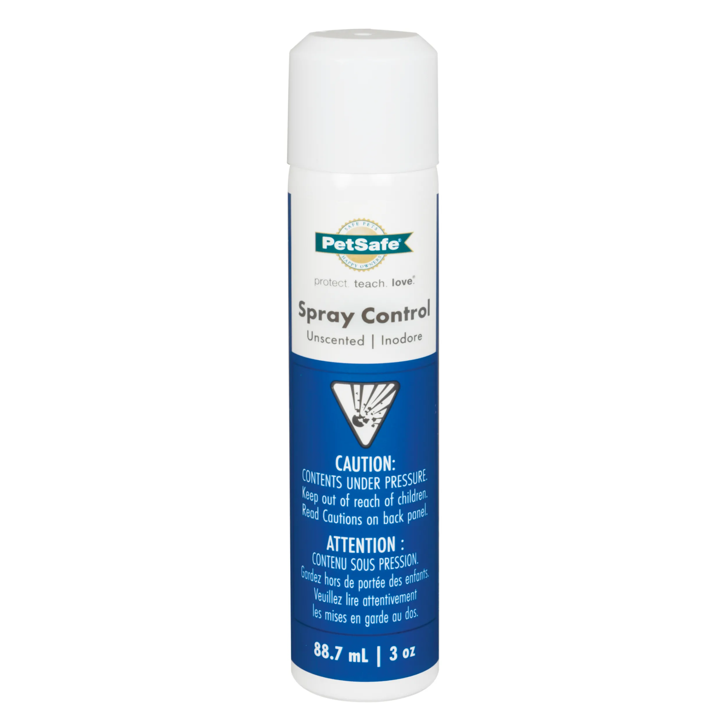 An unscented spray refill that works with PetSafe® spray bark control. To properly refill collar the unit must be turned off. Make sure the spray can is upright while you firmly press the nozzle down into the refill port. Hold for 15 seconds and remove. If spray leaks out during refill, you may need to press harder to complete the seal.